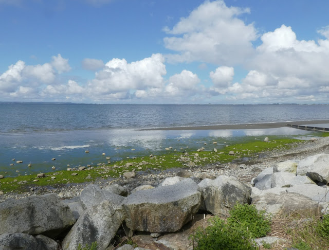 A tree planted in the mud had toppled over. It might have been a prop put there by a movie crew, or, as a friend suggested, dragged into the water by an industrious seal.